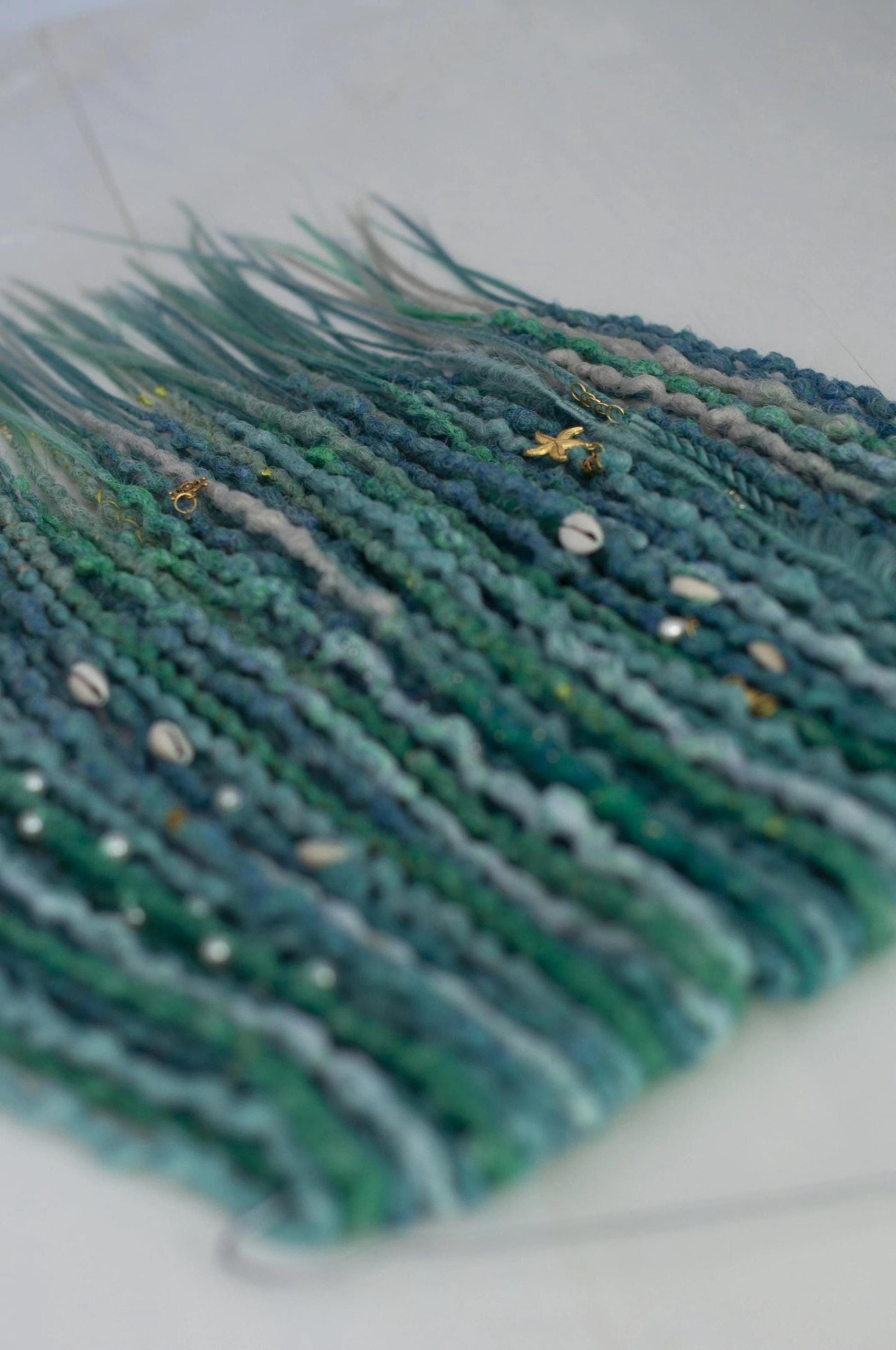 Ocean-inspired synthetic dreadlocks in turquoise, emerald, teal, and deep peacock blue shades with a smooth ombre blend. Lightweight, fluid, and eye-catching, designed for festivals, photoshoots, cosplay, and bold everyday looks.