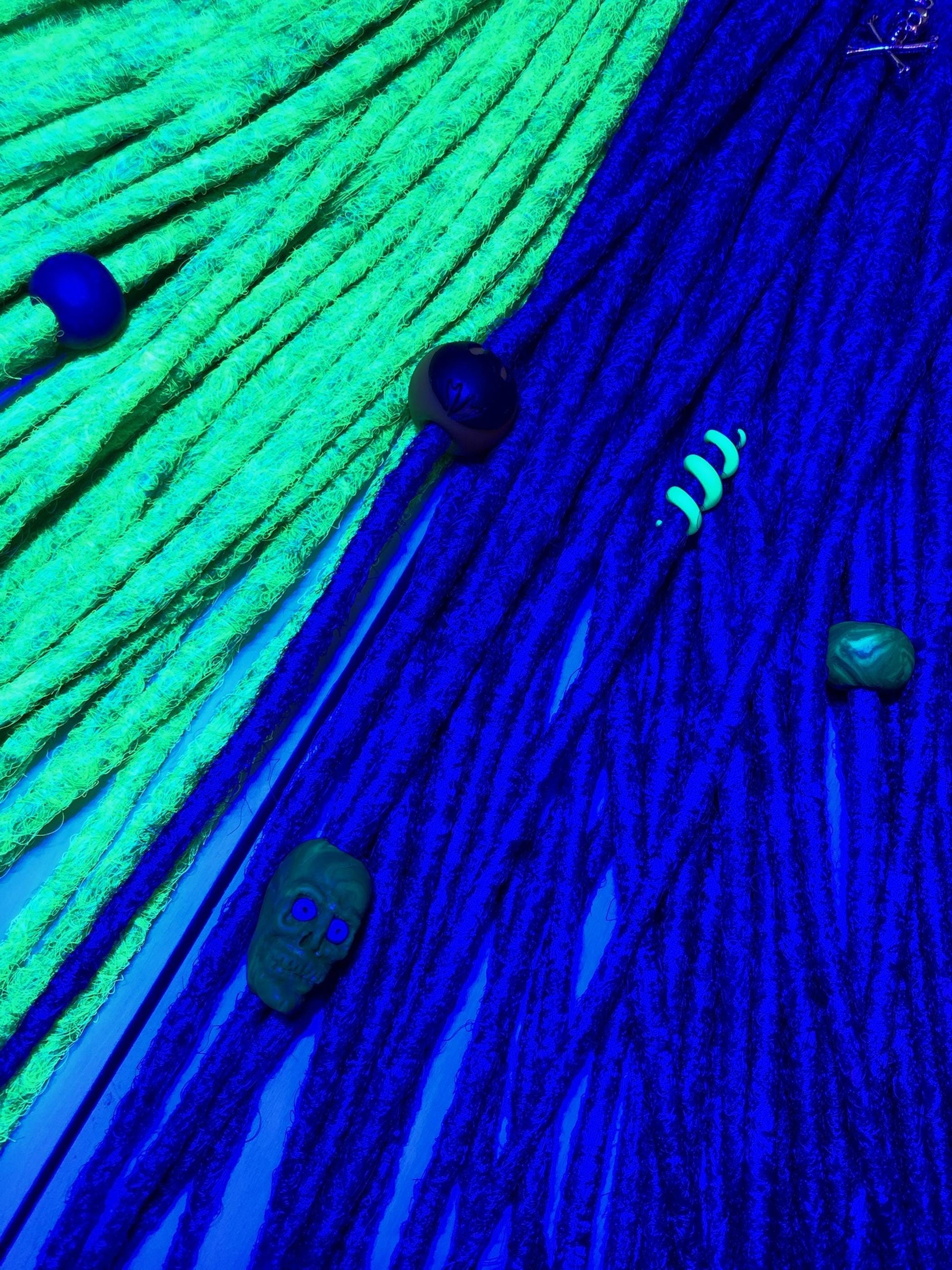 Joker UV Glow Dreads Set | Neon Green Purple Dreadlocks